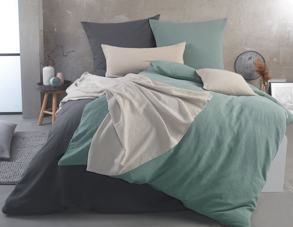 Unsere Musselin Bettwäsche besticht durch sehr guten Schlafkomfort und beste Hautfreundlichkeit. Diese Bettwäsche besteht aus zweilagigem Musselin-Gewebe aus 100% Baumwolle. Der weich gekreppte Stoff ist besonders hautfreundlich, anschmiegsam und temperaturausgleichend. Durch die charakteristische