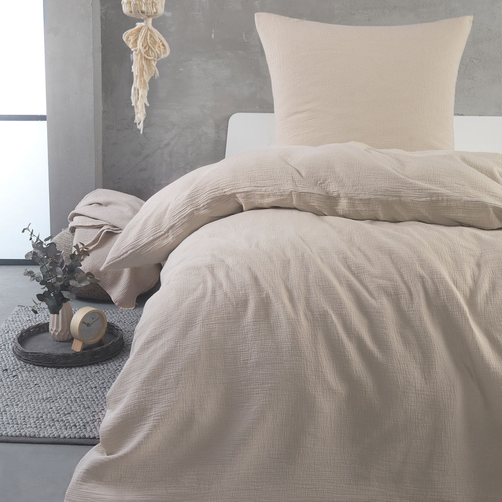 Hochwertige Musselin Bettwäsche Baumwolle 135x200 80x80cm Natur
